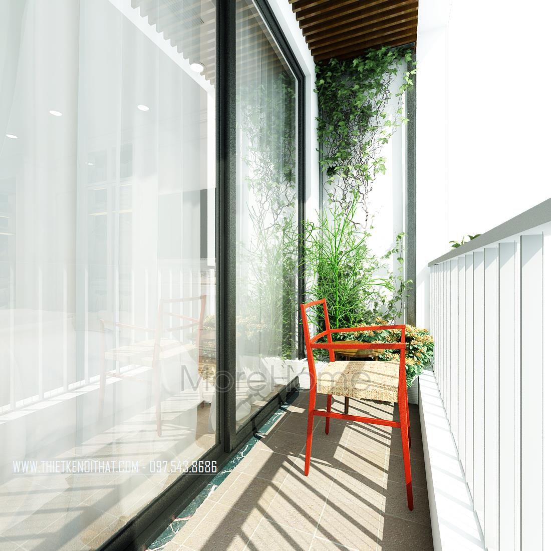 Bên cạnh đó, ánh sáng tự nhiên cũng là một yếu tố quan trọng giúp không gian trở nên mở và tràn đầy sức sống. Kính cường lực trong suốt được sử dụng để tạo độ mở và tăng cảm giác cơi nới cho không gian phòng hẹp. Một góc nhỏ của phòng khách được dành đặt bàn thờ trang nghiêm. Thiết kế vách gỗ hoa văn nhẹ nhàng được sử dụng tạo góc nhỏ riêng biệt vừa đảm bảo tính thẩm mỹ lại giúp tạo sự rõ ràng trong không gian. Thiết kế bàn thờ đơn giản, không quá cầu kỳ, có các họa tiết trạm khắc đơn giản, nhẹ nhàng giúp đảm bảo tính thẫm mỹ cho không gian, tone màu nâu trầm ấp áp giúp mang lại cảm giác an toàn, an nhiên cho gia chủ.