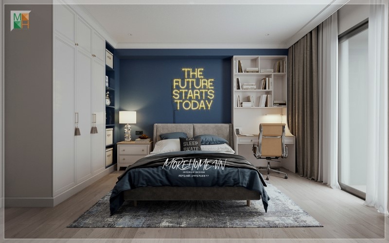 Bạn nên đặt giường đối diện với cửa ra vào để nó trở thành tâm điểm ngay khi bạn bước vào phòng. phòng. Bạn cũng có thể tạo điểm nhấn cho cửa sổ và tận dụng tối đa ánh sáng tự nhiên.