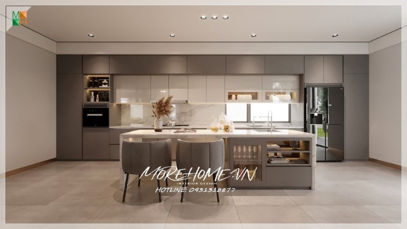 Phòng bếp được thiết kế mang phong cách hiện đại tinh tế, ấn tượng