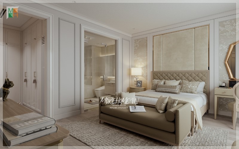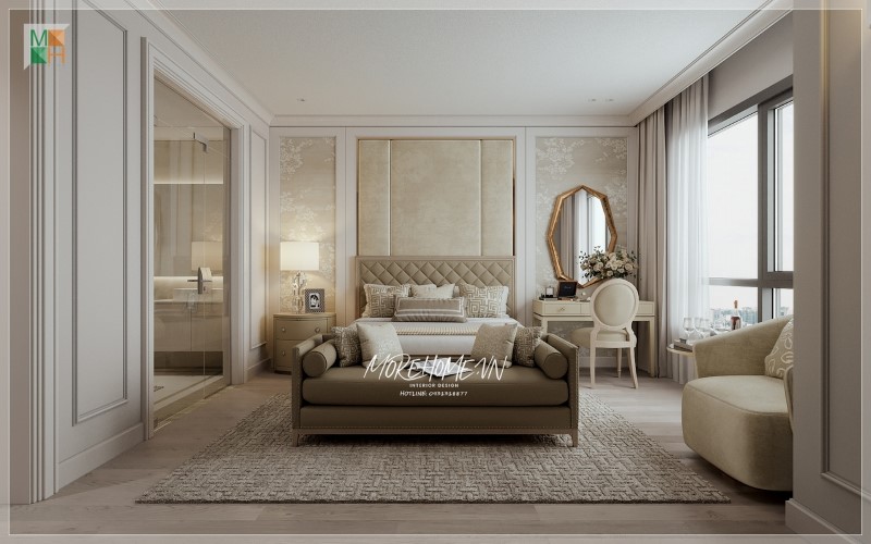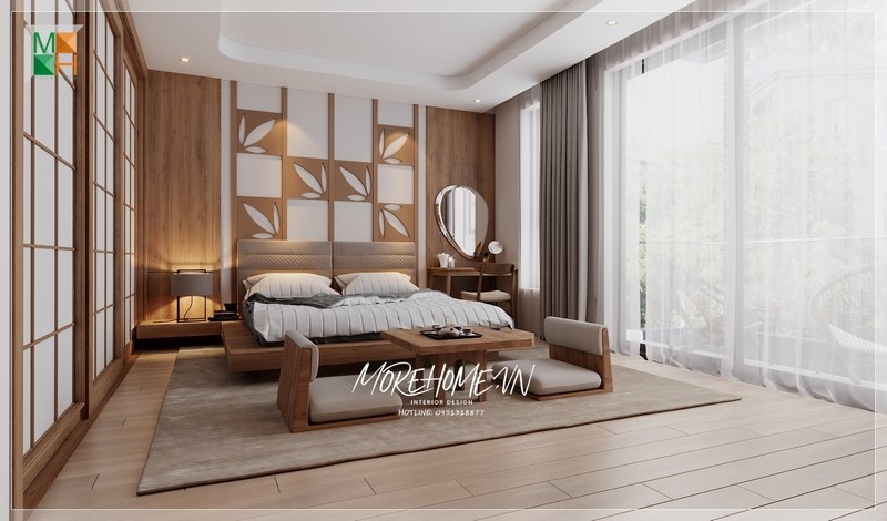 Phòng ngủ được bố trí đầy đủ mọi nội thất tiện nghi