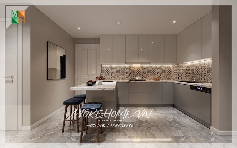 Mẫu tủ bếp được thiết kế mang phong cách hiện đại