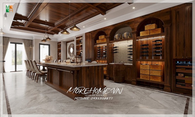 Không gian trưng bày rượu với nội thất gỗ tự nhiên tinh tế