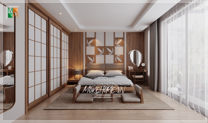 Không gian phòng ngủ thêm trang hoàng khi có sự góp mặt của nội thất gỗ