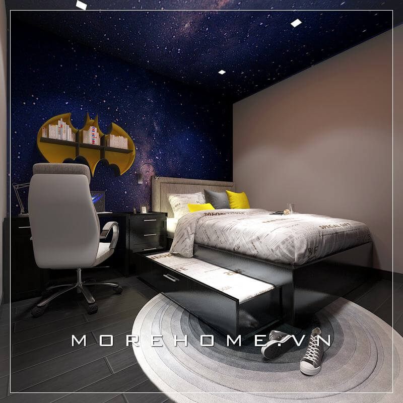 Phòng ngủ bé trai của bạn sẽ trở nên đẹp mắt hơn khi được trang trí bằng tranh dán tường 3D vũ trụ. Nếu con bạn thích phong cách này, hãy liên hệ với Morehome để được tư vấn và sở hữu nhé.