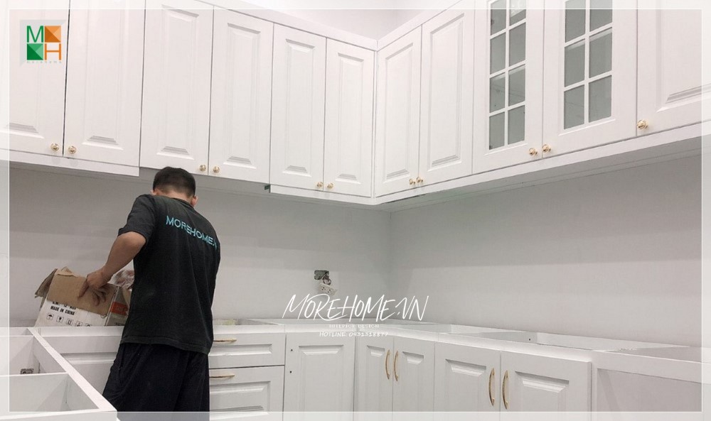 Liên hệ MoreHome để được tư vấn các mẫu tủ bếp đẹp, phù hợp với phong cách nhà bạn nhé. Hotline: 0931318877