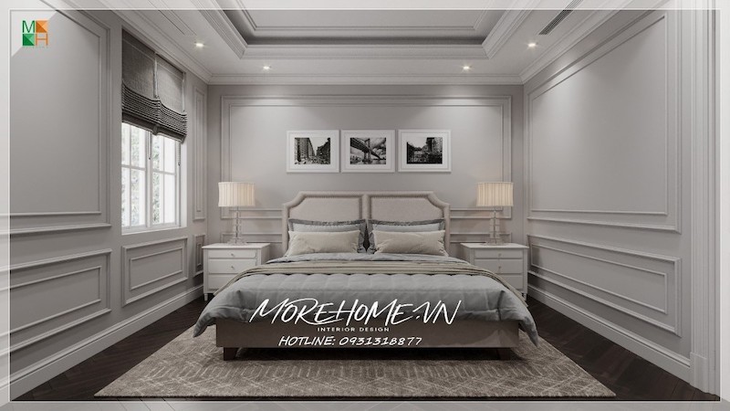 Phòng ngủ được thiết kế mang phong cách tân cổ điển