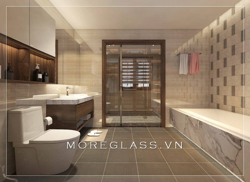 Phòng tắm khách sạn được thiết kế đẹp, sang trọng với nội thất hiện đại và đầy đủ các tiện nghi.
