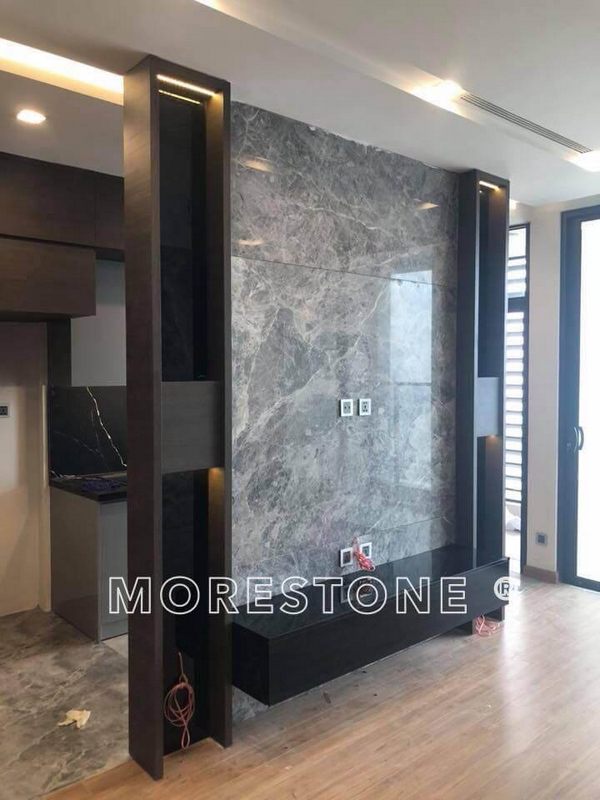 Với sự sáng bóng, dễ dàng vệ sinh lại và đẹp bền bỉ không bao giờ bị lỗi mốt hay nhàm chán, đá tự nhiên là lựa chọn được nhiều gia chủ ưa thích để ốp tường phòng khách để tạo nên điểm nhấn cho không gian.